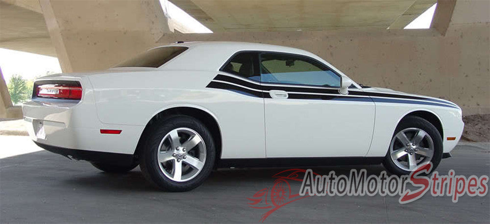 • Dodge Challenger DUEL Factory Style Side Strobe Stripes Vinyl Graphic Decals