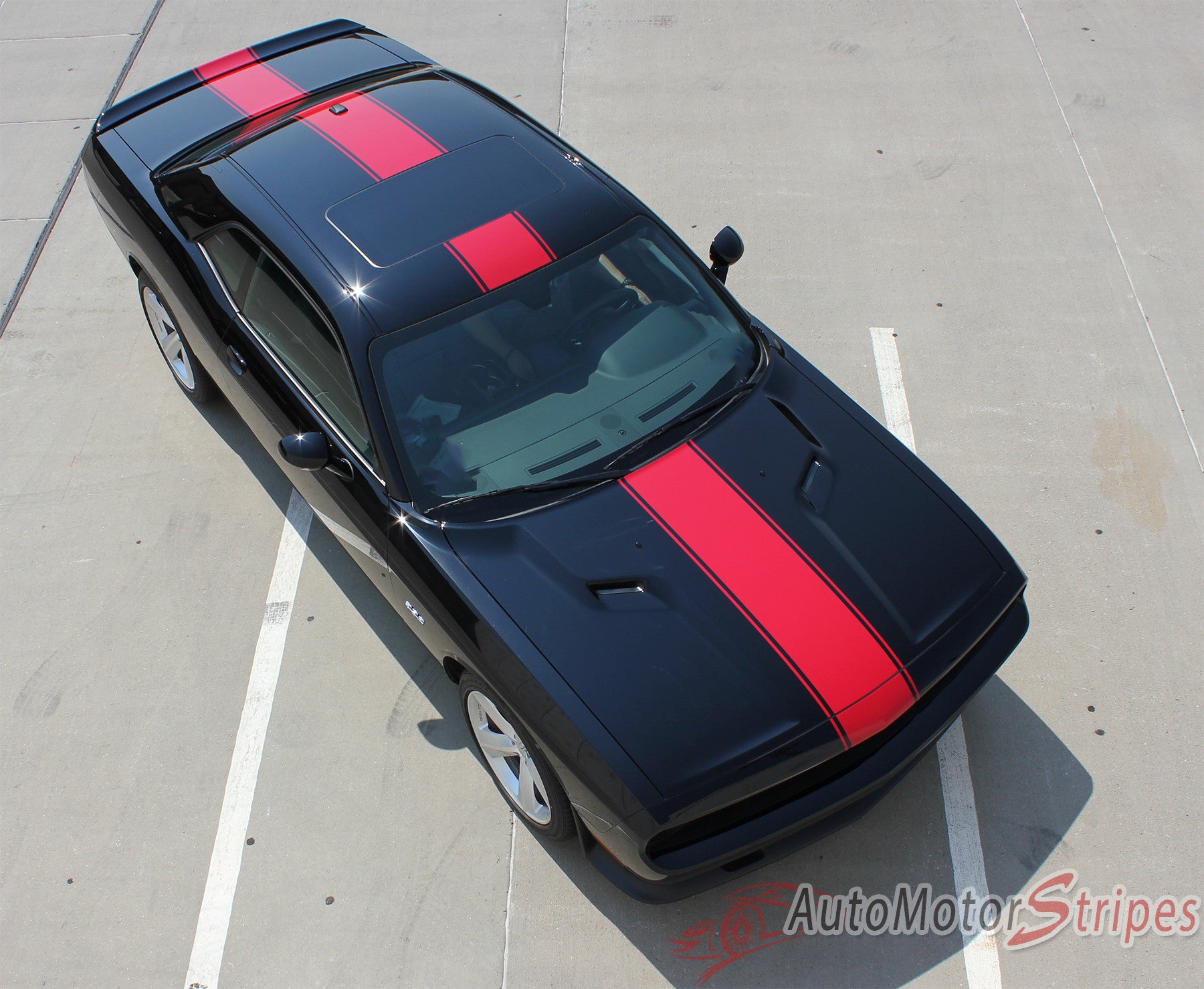 • Dodge Challenger FINISH LINE Center Wide Redline Rallye Style Complete Racing Stripes Kit Vinyl Graphic Decals