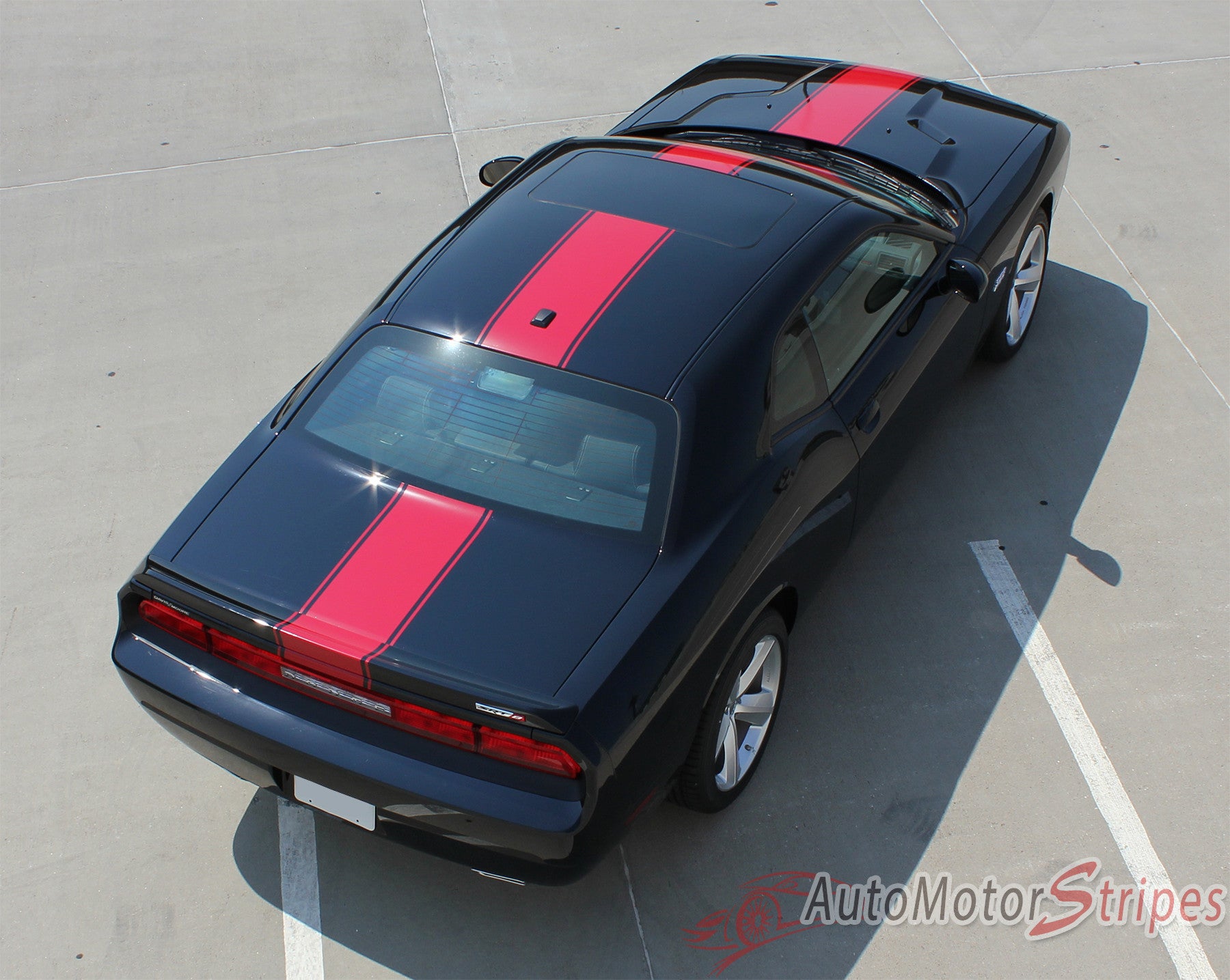 • FINISHLINE vinyl striping package, brand new from AutoMotorStripes!  Get noticed with this Redline Rallye inspired hood roof and trunk vinyl design! This vinyl graphic design is based on the OEM factory graphic kit, and is an accent striping package and has quickly become one of our best selling stripe kits for the current generation of vinyl decal kits for the new Dodge Challenger! This vinyl stripe kit has been specially and painstakingly precision measured and designed to fit the 2011-2014 Dodge Challenger. See precise fitment for the exact model/year mentioned above. Please also choose the correct options for your particular Dodge Challenger model stripe kit from those in the menu above. The vinyl graphic decal sections included with this vehicle specific vinyl stripe kit are hood, roof, and trunk graphic decals. You can choose the options needed from the menu before adding to your cart, including the premium cast vinyl grade needed. Add this classic designed exterior accessory to the Dodge Challenger model for a modern 21st century look and feel! You will wonder why you let your Challenger go so long without these vinyl graphics! Add durability and weather resistance with these vinyl stripes, and add many years of enjoyment for a more custom factory style!