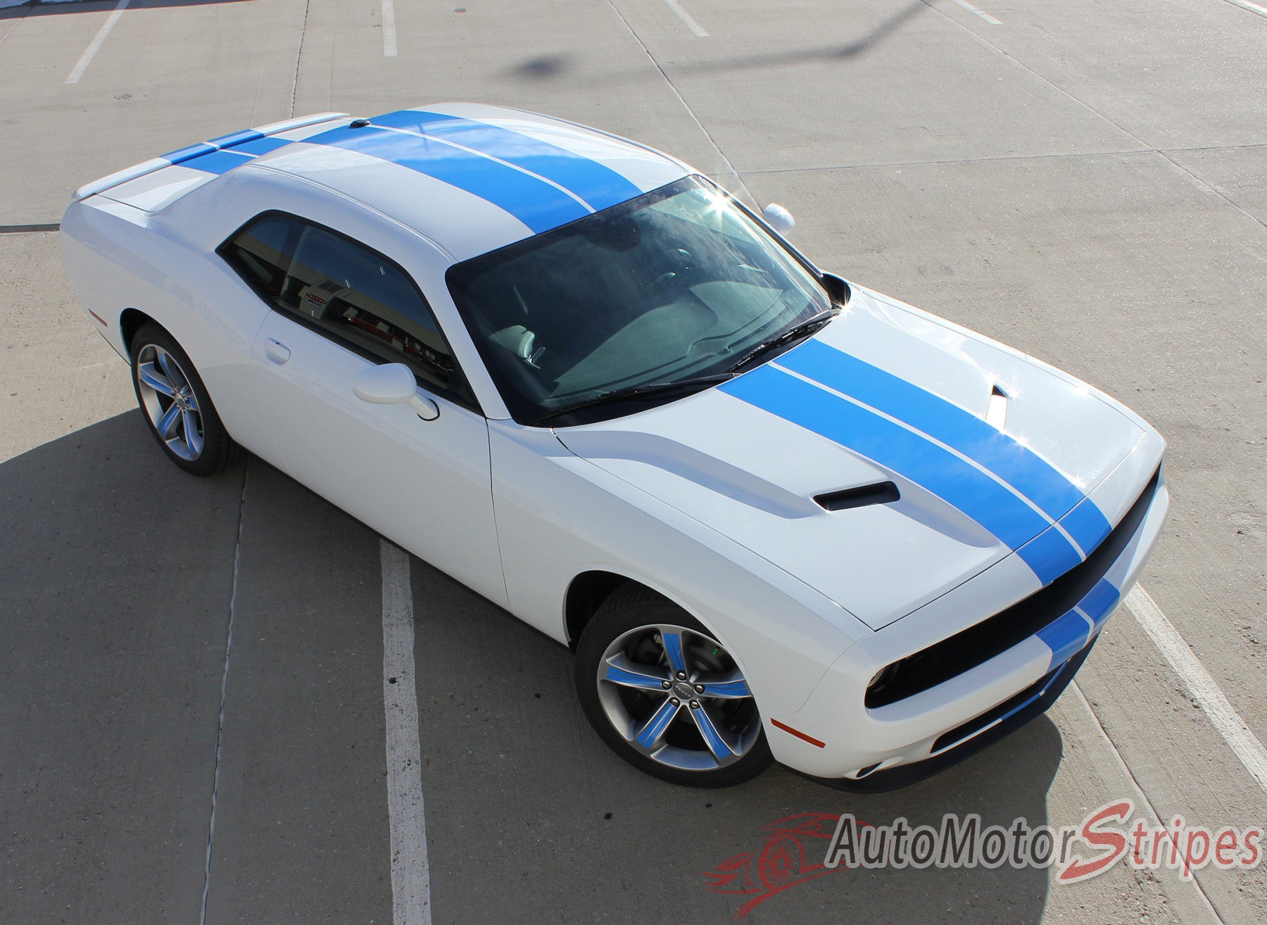 • CHALLENGER RALLY 15 vinyl striping package, brand new from AutoMotorStripes!  If you have been looking for the best fitting racing stripes available, look no further! The dual rally style vinyl graphic based on the OEM factory hood striping, this accent stripe kit is one of our longest running and best selling stripe kits for the current generation of vinyl decal kits for the new Dodge Challenger! This vinyl stripe kit has been specially and painstakingly precision measured and designed to fit the 2015 2016 2017 2018 2019 2020 2021 2022 2023 Dodge Challenger. See precise fitment for the exact model/year mentioned above. Please also choose the correct options for your particular Dodge Challenger model stripe kit from those in the menu above. The vinyl graphic decal sections included with this vehicle specific vinyl stripe kit are front bumper striping, hood graphics, roof decals, trunk decal sections, and optional spoiler decals. You can choose the options needed from the menu before adding to your cart, including the premium cast vinyl grade needed. Add this classic designed exterior accessory to the Dodge Challenger model for a modern 21st century look and feel! You will wonder why you let your Challenger go so long without these vinyl graphics! Add durability and weather resistance with these vinyl stripes, and add many years of enjoyment for a more custom factory style!