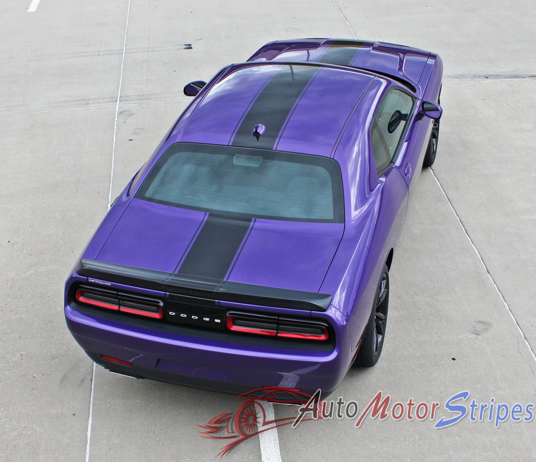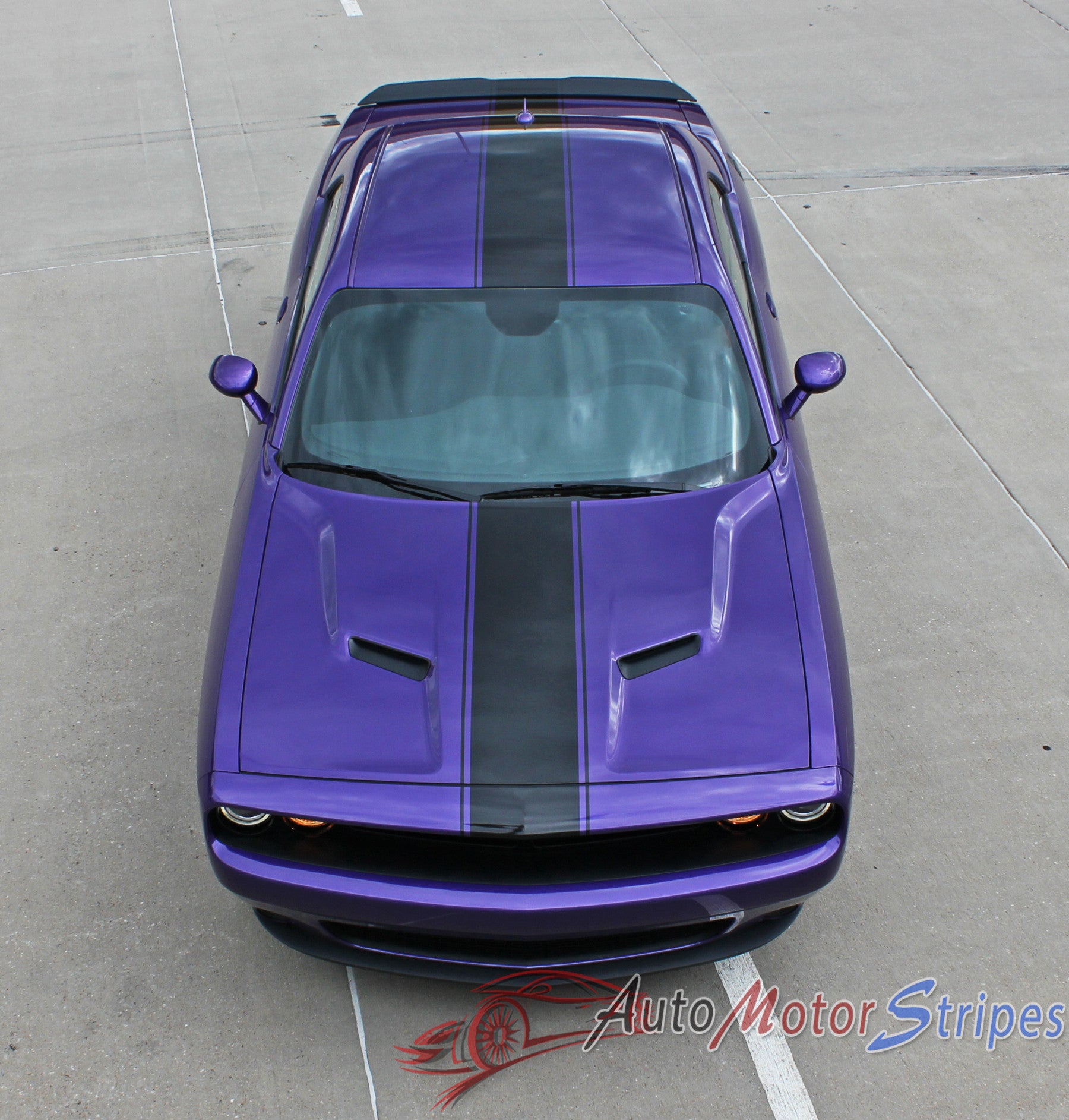 • FINISHLINE 2 vinyl striping package, brand new from AutoMotorStripes!  Get noticed with this Redline Rallye inspired hood roof and trunk vinyl design! This vinyl graphic design is based on the OEM factory graphic kit, and is an accent striping package and has quickly become one of our best selling stripe kits for the current generation of vinyl decal kits for the new Dodge Challenger! This vinyl stripe kit has been specially and painstakingly precision measured and designed to fit the 2015 2016 2017 2018 2019 2020 2021 2022 2023 Dodge Challenger. See precise fitment for the exact model/year mentioned above. Please also choose the correct options for your particular Dodge Challenger model stripe kit from those in the menu above. The vinyl graphic decal sections included with this vehicle specific vinyl stripe kit are hood, roof, and trunk graphic decals. You can choose the options needed from the menu before adding to your cart, including the premium cast vinyl grade needed. Add this classic designed exterior accessory to the Dodge Challenger model for a modern 21st century look and feel! You will wonder why you let your Challenger go so long without these vinyl graphics! Add durability and weather resistance with these vinyl stripes, and add many years of enjoyment for a more custom factory style!