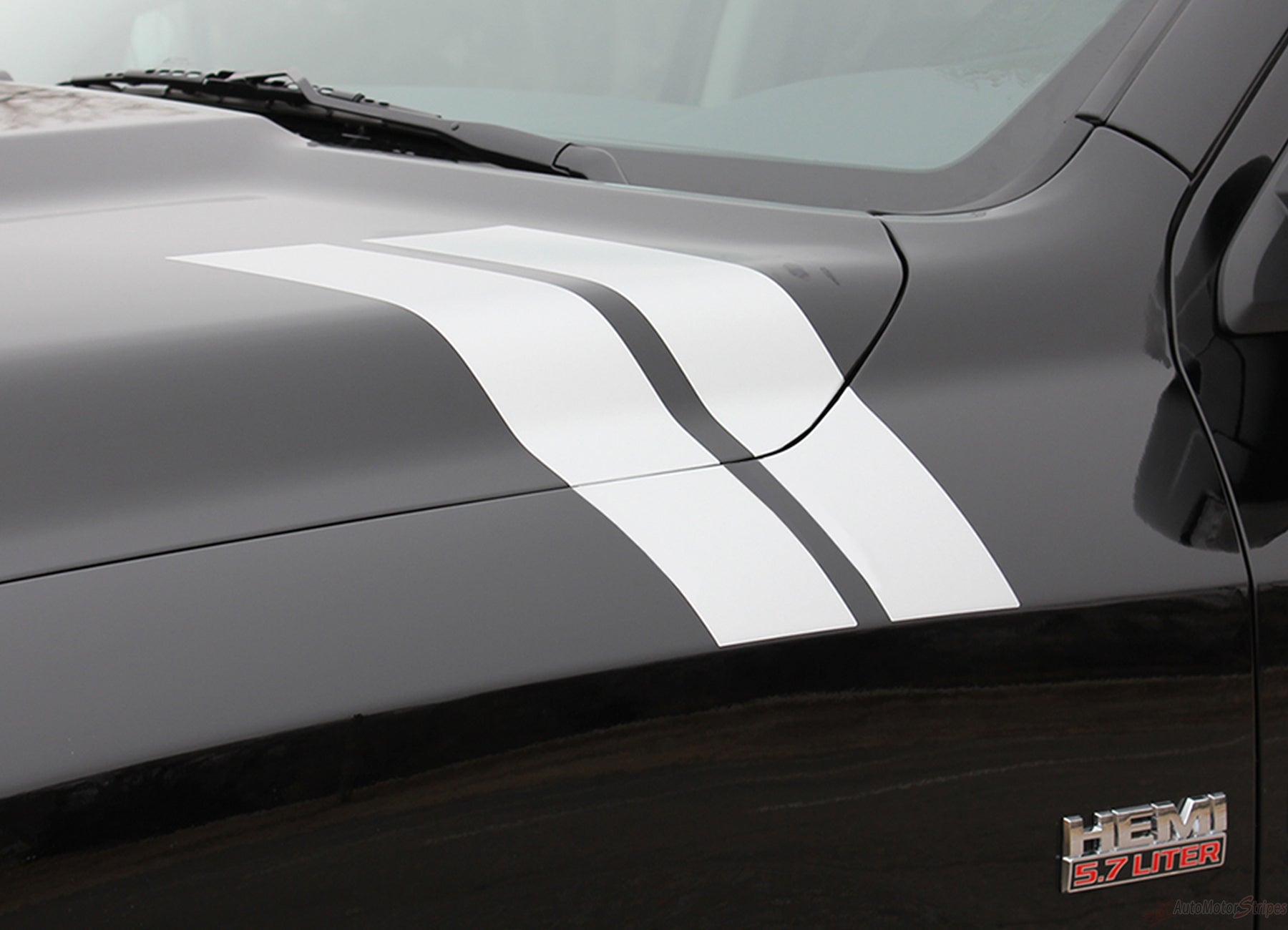 2009-2017 2018 Dodge Ram Hash Marks Double Bar Truck Hood Fender Vinyl Graphic 3M Stripe Package