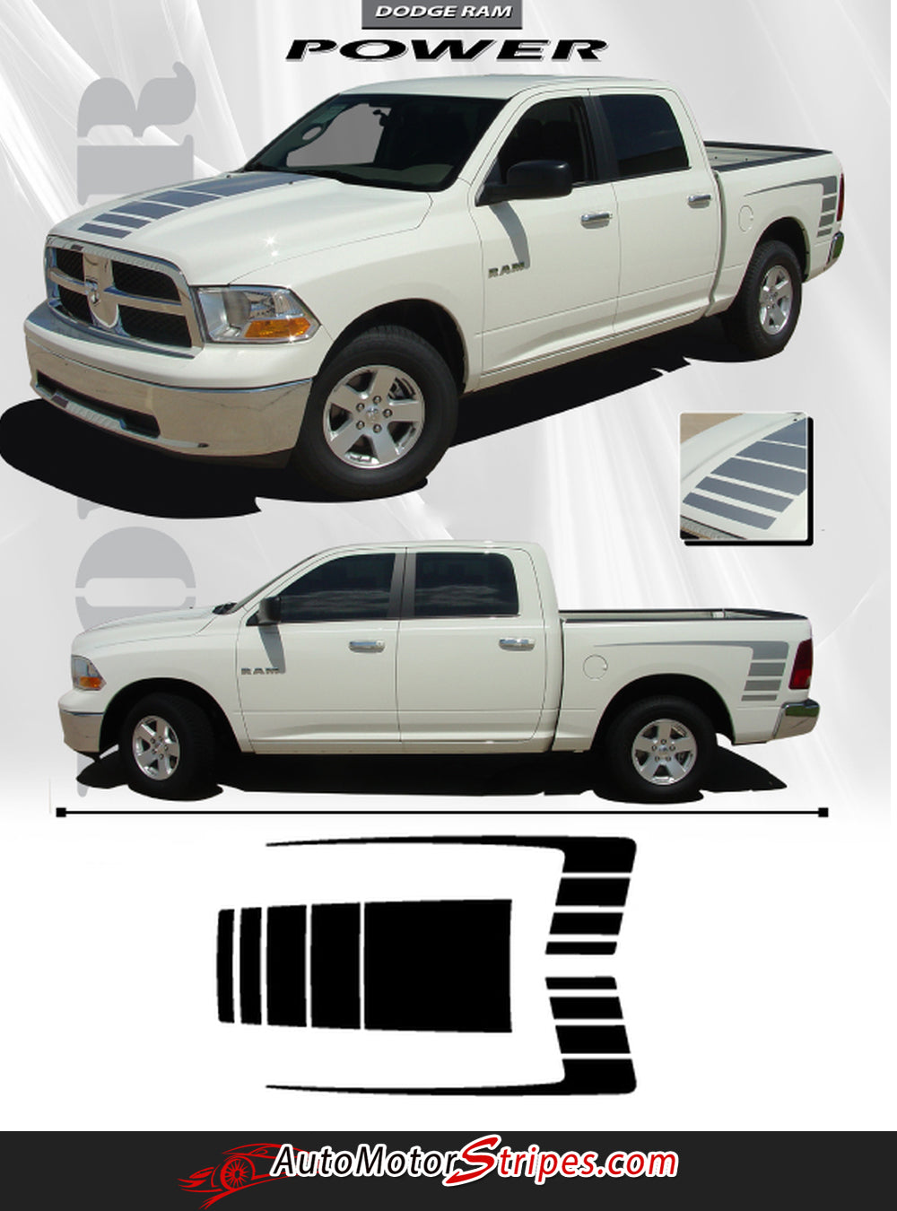 2009-2017 2018 Dodge Ram Power Truck Hood and Rear Side Strobes Truck Bed Vinyl Graphic 3M Stripe Package