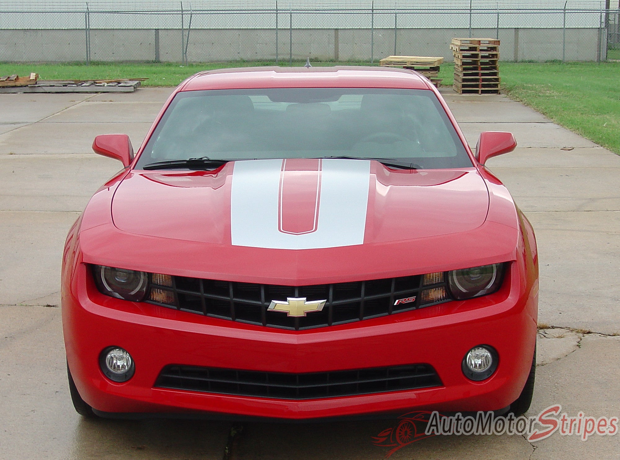 2010-2013 and 2014-2015 Chevy Camaro Energy Sema Style Wide Vinyl Stripes Kit - Hood View