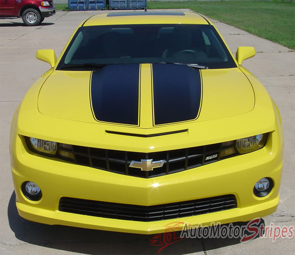 2010-2013 and 2014-2015 Chevy Camaro R-Sport OEM Factory Style 3M Rally Graphics and Racing Stripes Kit - Hood View