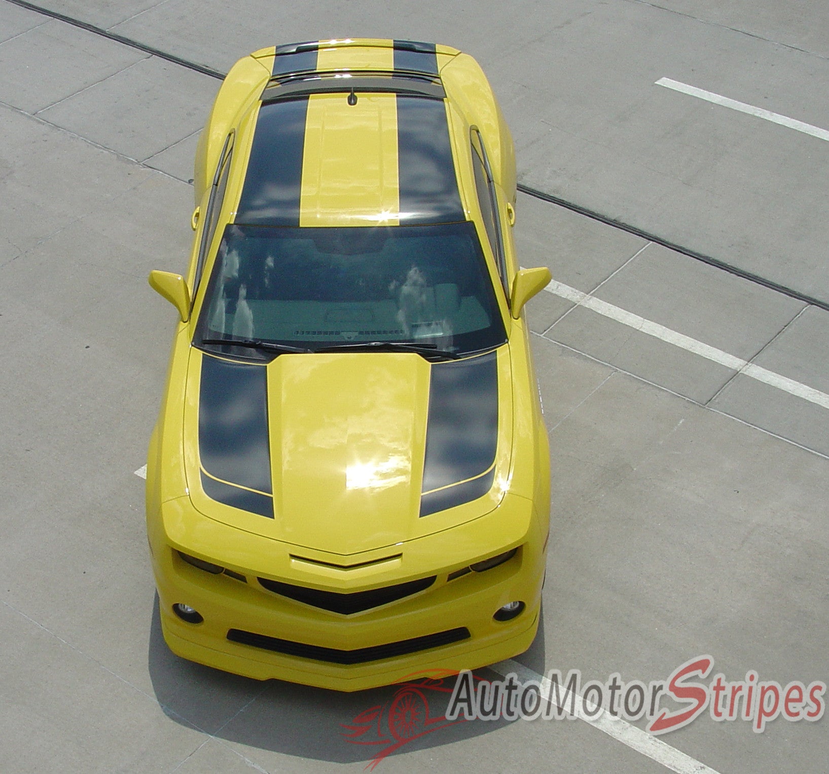 2010-2013 or 2014-2015 Chevy Camaro Bumblebee Bee 2 Transformers Style Racing Rally Stripes - Front Top Overview
