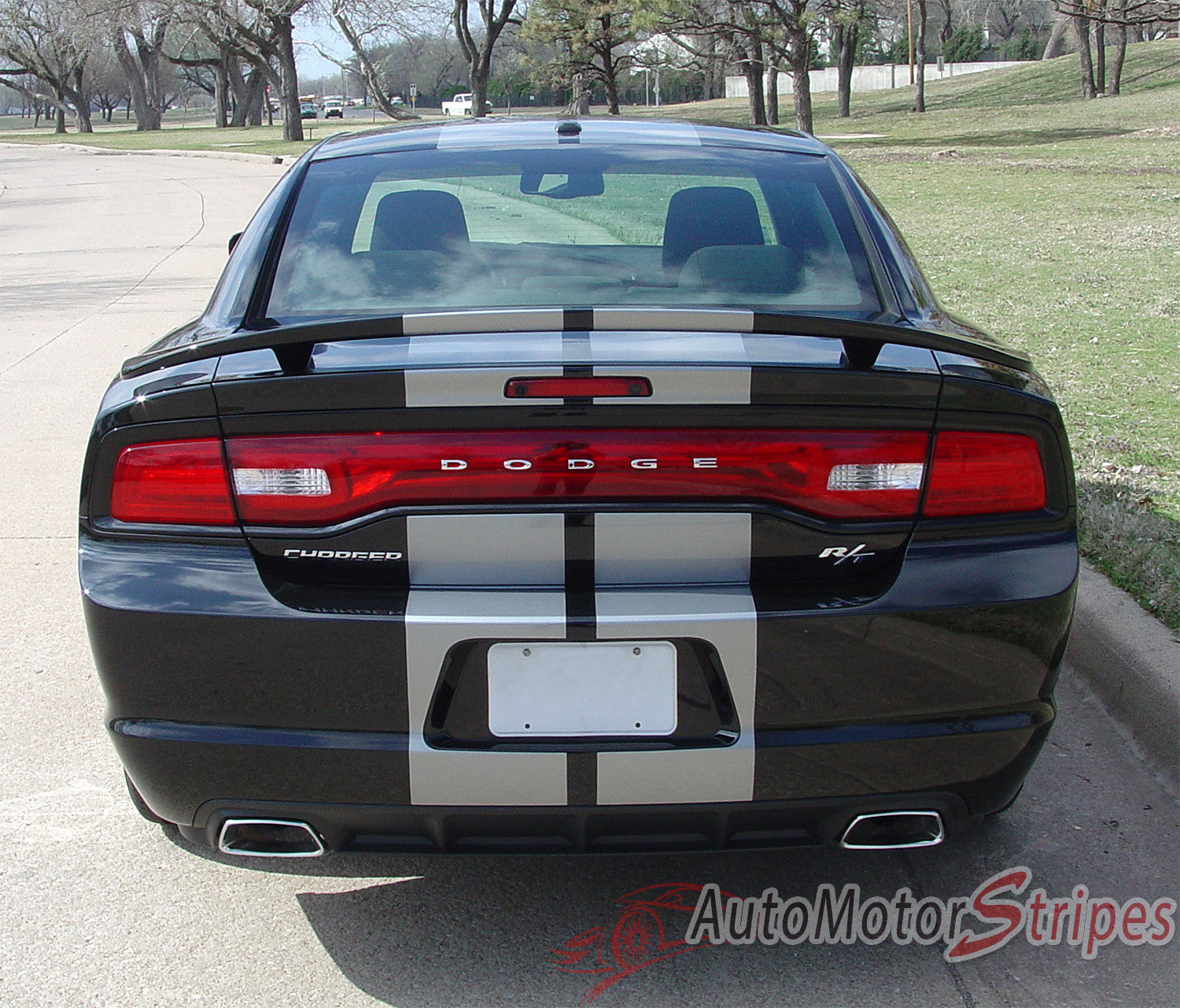 2011-2014 Dodge Charger N-Charge Rally Mopar Style Vinyl Graphic - Silver Metallic on Black Rear View
