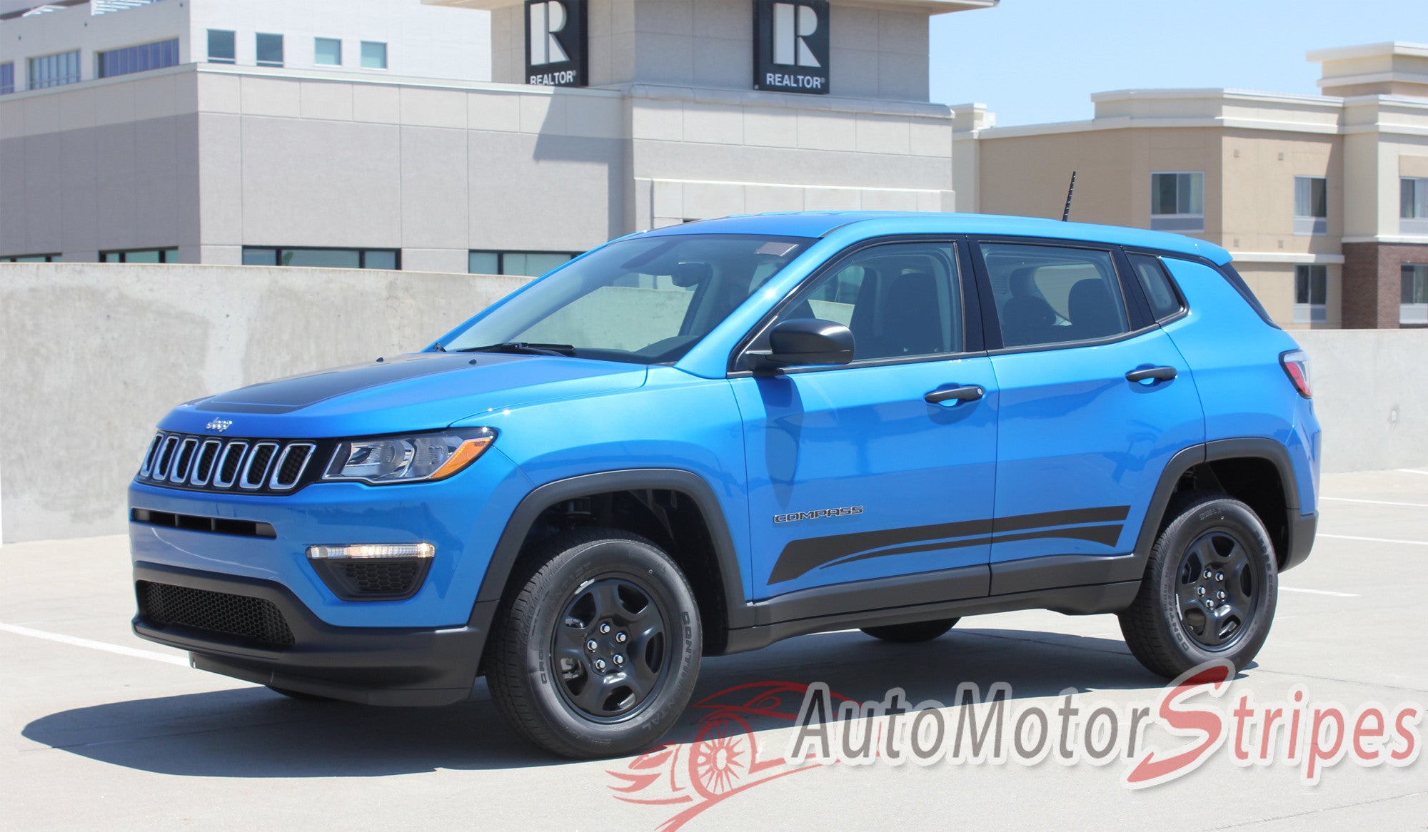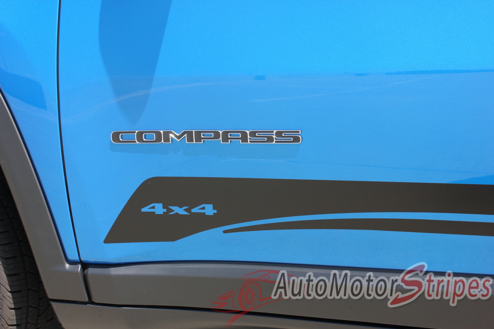 • Jeep Compass COURSE vinyl graphic and striping packages, brand new from AutoMotorStripes!  The new Jeep Compass has been redesigned! This Course Lower Body Line Rocker Accent trim package vinyl graphic design will add style and class to your Jeep Compass! This vinyl striping graphic design has just what this Jeep model needs, an upgraded custom factory OE graphic decal style, and is a very popular accent striping package for our local Jeep auto dealers. This SUV needs a popular selling vinyl stripe package to help auto dealers sell the current generation of Jeep! You will purchase quality vinyl, because much time, effort and skill has gone into patiently and properly measuring this vinyl graphic style for precision fitment, and designed to fit the 2017 2018 2019 2020 2021 2022 2023 2024 2025 Jeep Compass. Please see precise fitment for the exact model/year mentioned above. Please remember to also choose the correct vinyl decal options for your particular model from those in the menu shown above. The vinyl decal sections sections included with this vehicle specific vinyl graphic kit are DRIVER and PASSENGER side graphic decals. You can now choose the options needed from the menu before adding to your cart, including the premium cast vinyl grade needed. This design is based on a classic, and is an exterior accessory for the Jeep Compass model and gives it a very modern day upgrade! Don't let your Jeep go another day without these stylish vinyl graphics! You will receive many years of enjoyment with this weather resistant and durable custom factory vinyl style!