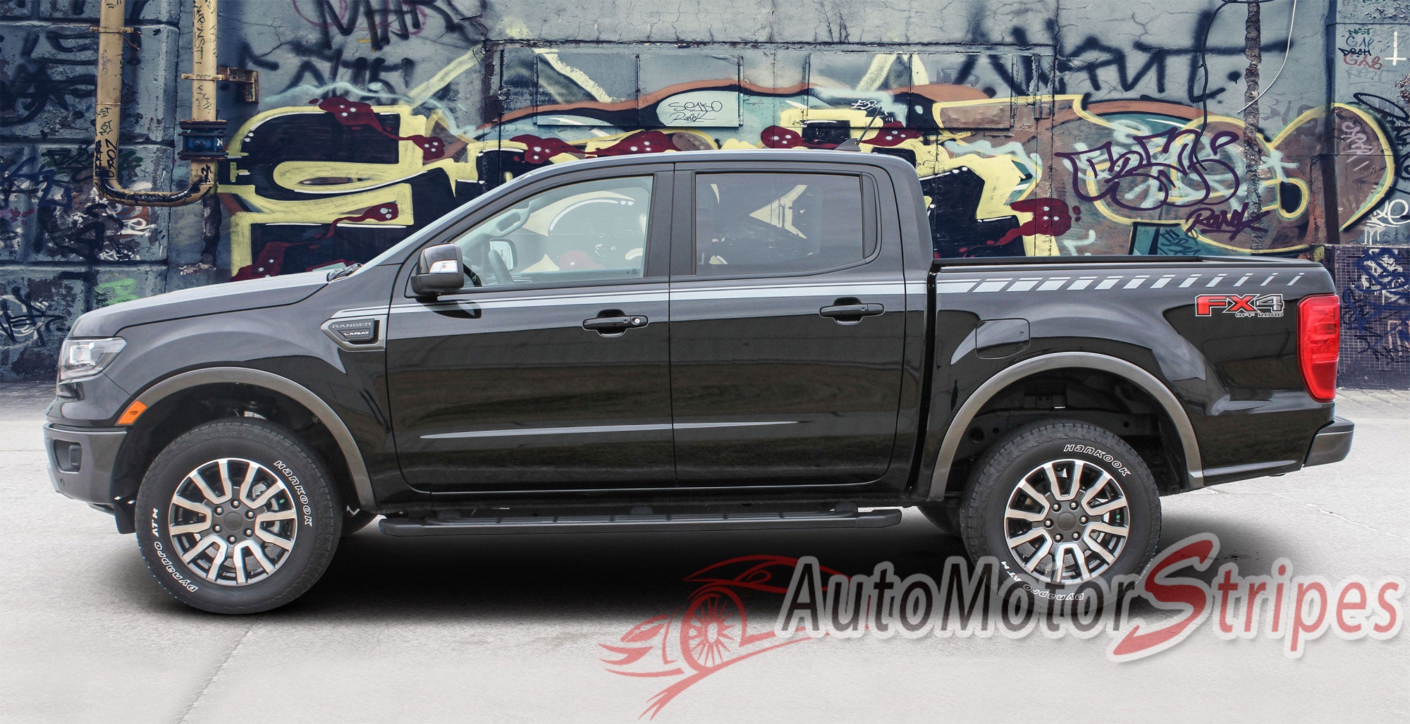 • Ford Ranger UPROAR vinyl graphic and striping packages, brand new from AutoMotorStripes!  A return to the modern mid-sized truck, the new Ford Ranger is ready for the off road! This upper body side door accent trim package vinyl graphic design will add style and class to your Ford Ranger! This vinyl striping graphic design has just what this Ford model needs, an upgraded custom factory OE graphic decal style, and is a very popular accent striping package for our local Ford auto dealers. These cars need a popular selling vinyl stripe package to help auto dealers sell the current generation of Ford mid-sized trucks! You will purchase quality vinyl because much time, effort and skill has gone into patiently and properly measuring this vinyl graphic style for precision fitment, and designed to fit the 2019 2020 2021 2022 2023 Ford Ranger. Please see precise fitment for the exact model/year mentioned above. Please remember to also choose the correct vinyl decal options for your particular model from those in the menu shown above. The vinyl decal sections sections included with this vehicle specific vinyl graphic kit are driver and passenger side graphic decals. You can now choose the options needed from the menu before adding to your cart, including the premium cast vinyl grade needed. This design is based on a classic, and is an exterior accessory for the Ford Ranger model and gives it a very modern day upgrade! Don't let your Ford go another day without these stylish vinyl graphics! You will receive many years of enjoyment with this weather resistant and durable custom factory vinyl style!