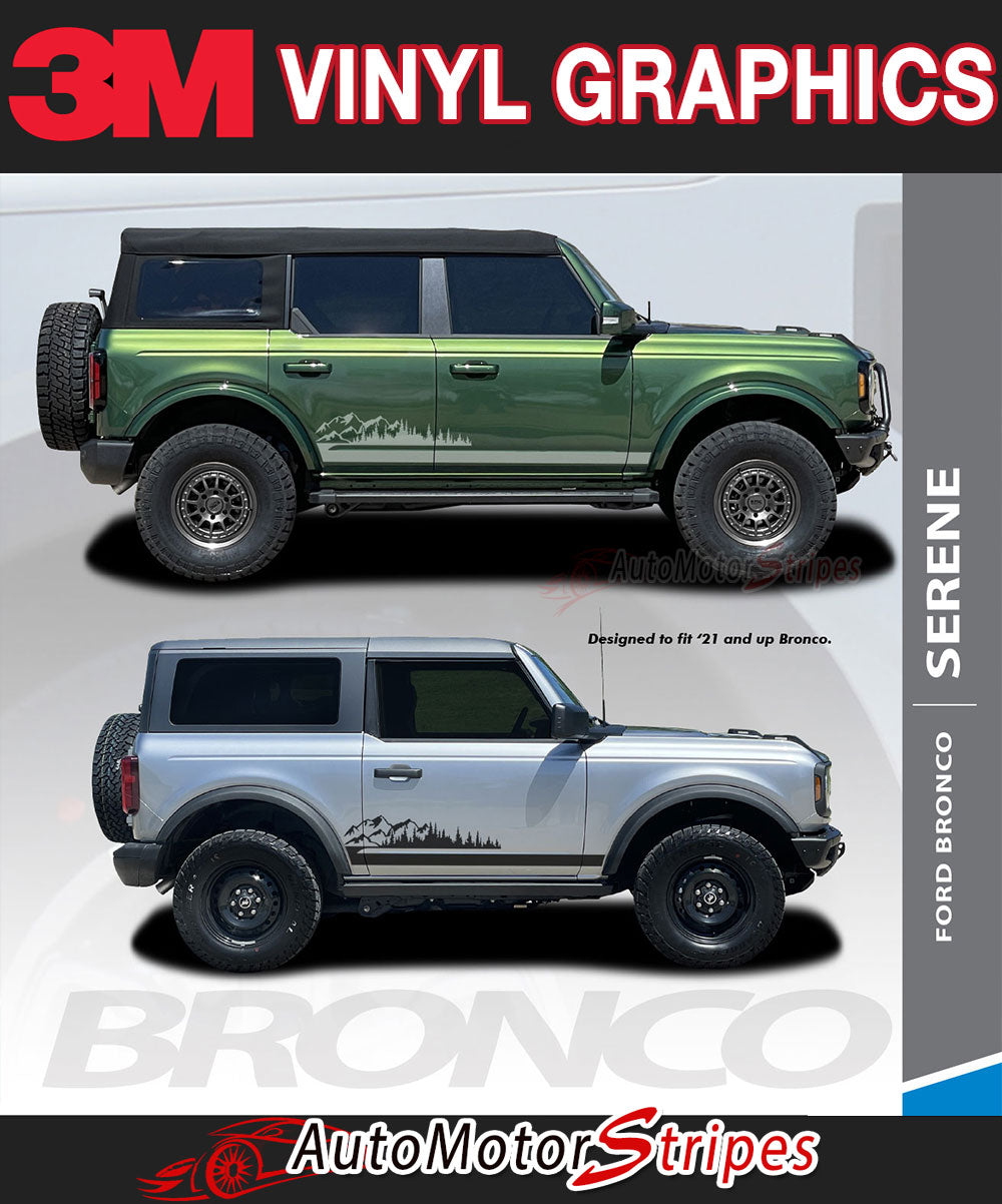 • Ford Bronco Full Size SERENE Side Body Stripes Upper Door Accent Decals Vinyl Graphics Kits 3M