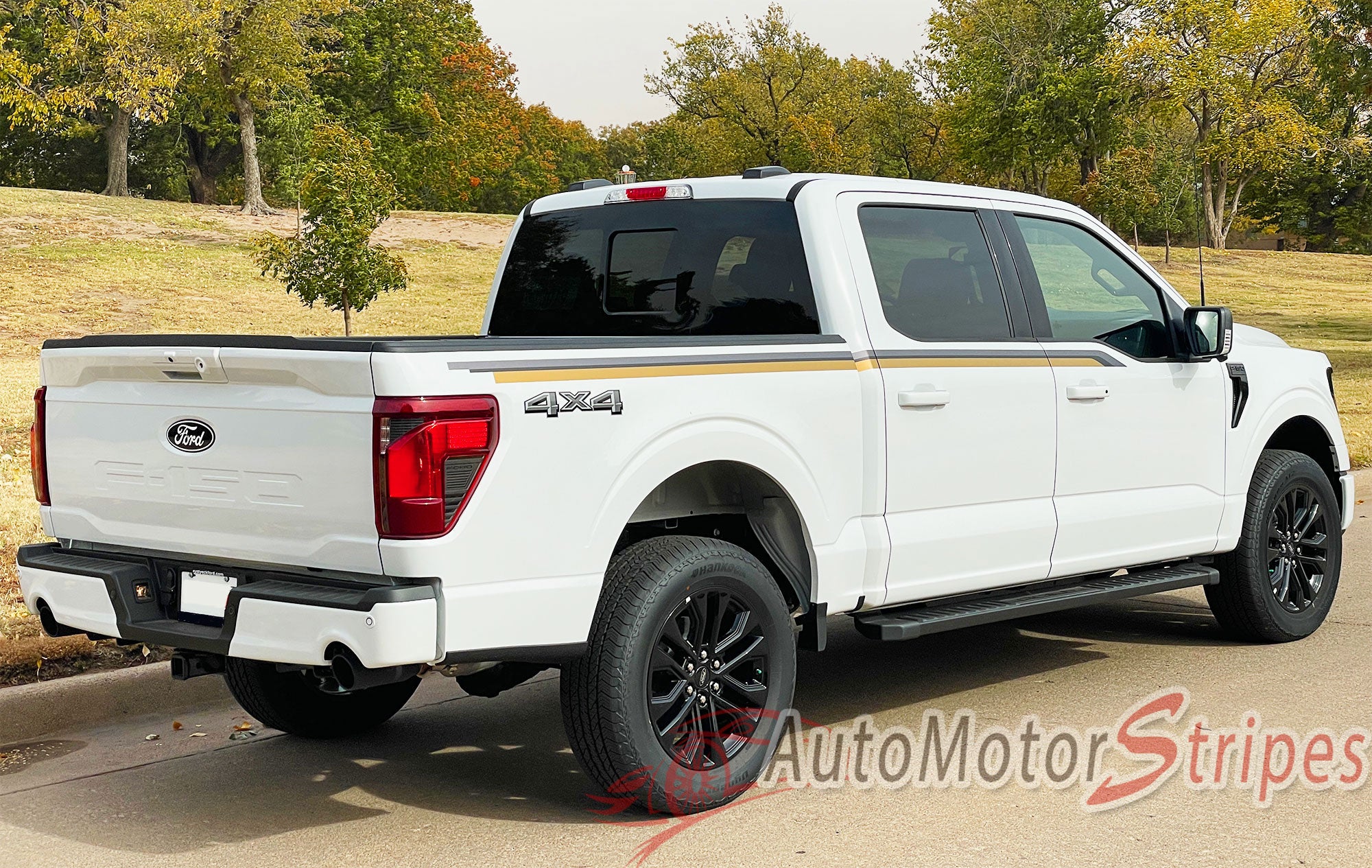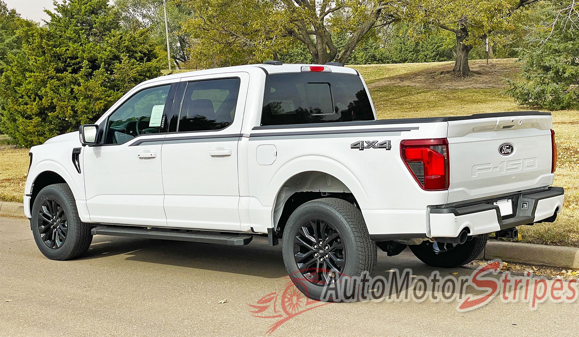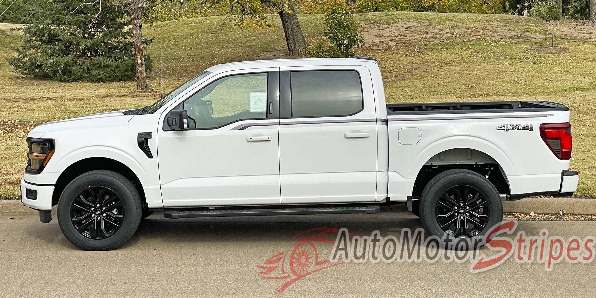 • F-150 Series ENFORCER Black/Gray or Bronze vinyl graphic and striping packages, brand new from AutoMotorStripes!  Ford F-150 Series, the number one truck for over 35 years running! Do you want your new Ford truck to stand out from the other thousands on the road today? If so, add this mid body panel door trim package vinyl graphic design! This vinyl striping graphic design has just what this Ford model needs, an upgraded custom factory OE graphic decal style, and is a very popular accent striping package for our local Ford auto dealers. These plain F-150 Series trucks need a popular selling vinyl stripe package to help these dealers sell the current generation of Ford F-150 Series! You will purchase quality vinyl, because much time, effort and skill has gone into patiently and properly measuring this vinyl graphic style for precision fitment, and designed to fit the 2021 2022 2023 2024 2025 2026 Ford F-150 Series truck. Please see precise fitment for the exact model/year mentioned above. Please remember to also choose the correct vinyl decal options for your particular Ford F-150 Series Truck model from those in the menu shown above. The vinyl decal sections sections included with this vehicle specific vinyl graphic kit are driver and passenger side graphic decals. You can now choose the options needed from the menu before adding to your cart, including the premium cast vinyl grade needed. This design is based on a classic, and is an exterior accessory for the Ford F-150 Series Truck model and gives it a very modern day upgrade! Don't let your F-150 Series go another day without these stylish vinyl graphics! You will receive many years of enjoyment with this weather resistant and durable custom factory vinyl style!