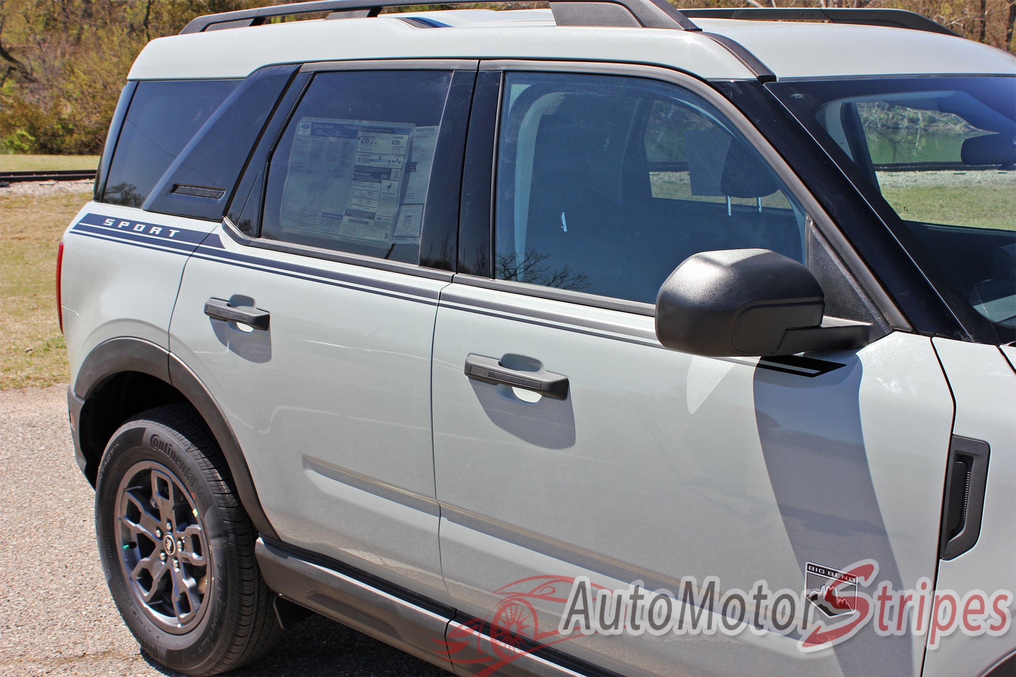 Detailed view of 2021-2026 Ford Bronco Sport LINEAR Side Body Stripes Upper Door Accent Decals Vinyl Graphics Kits 3M