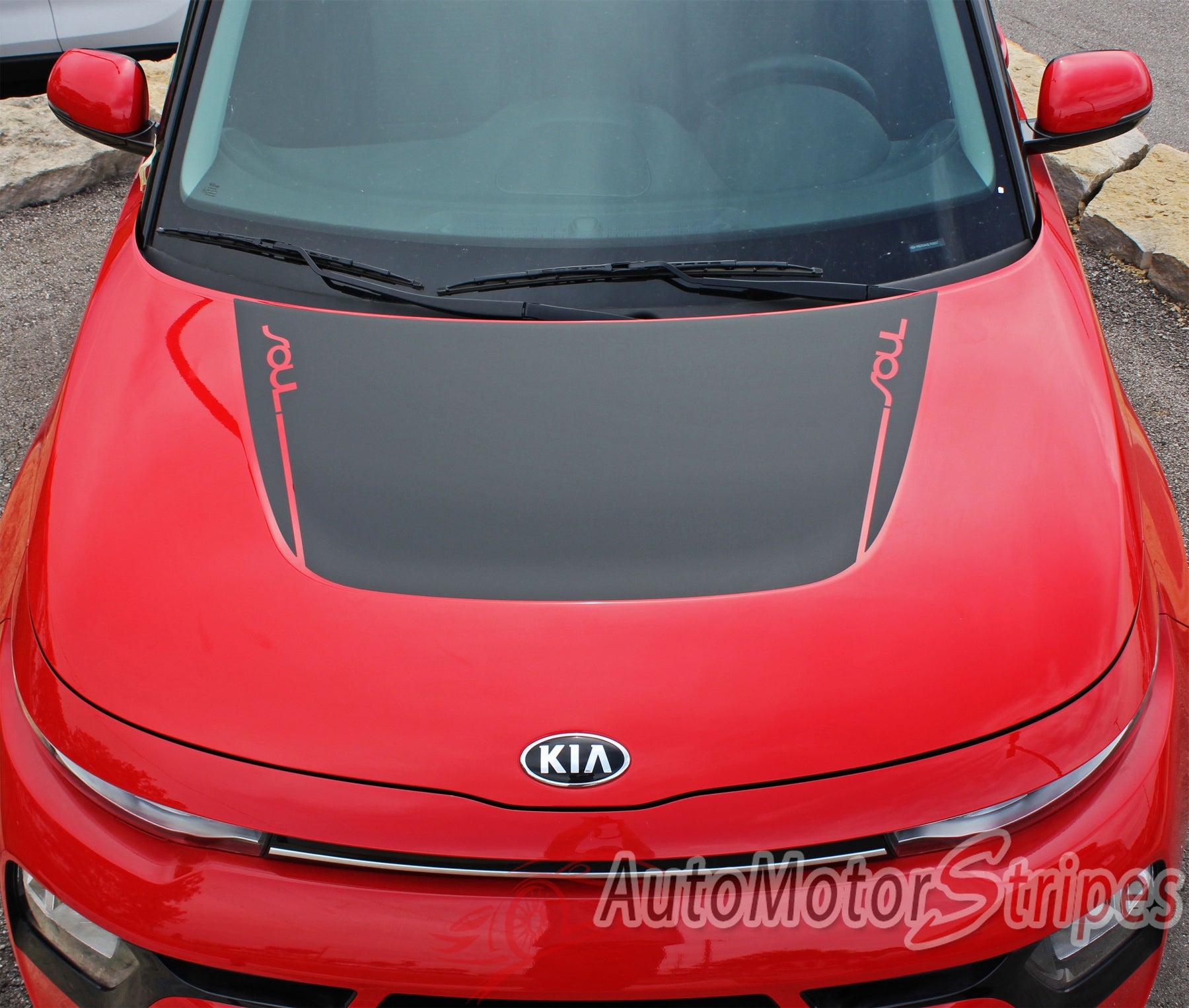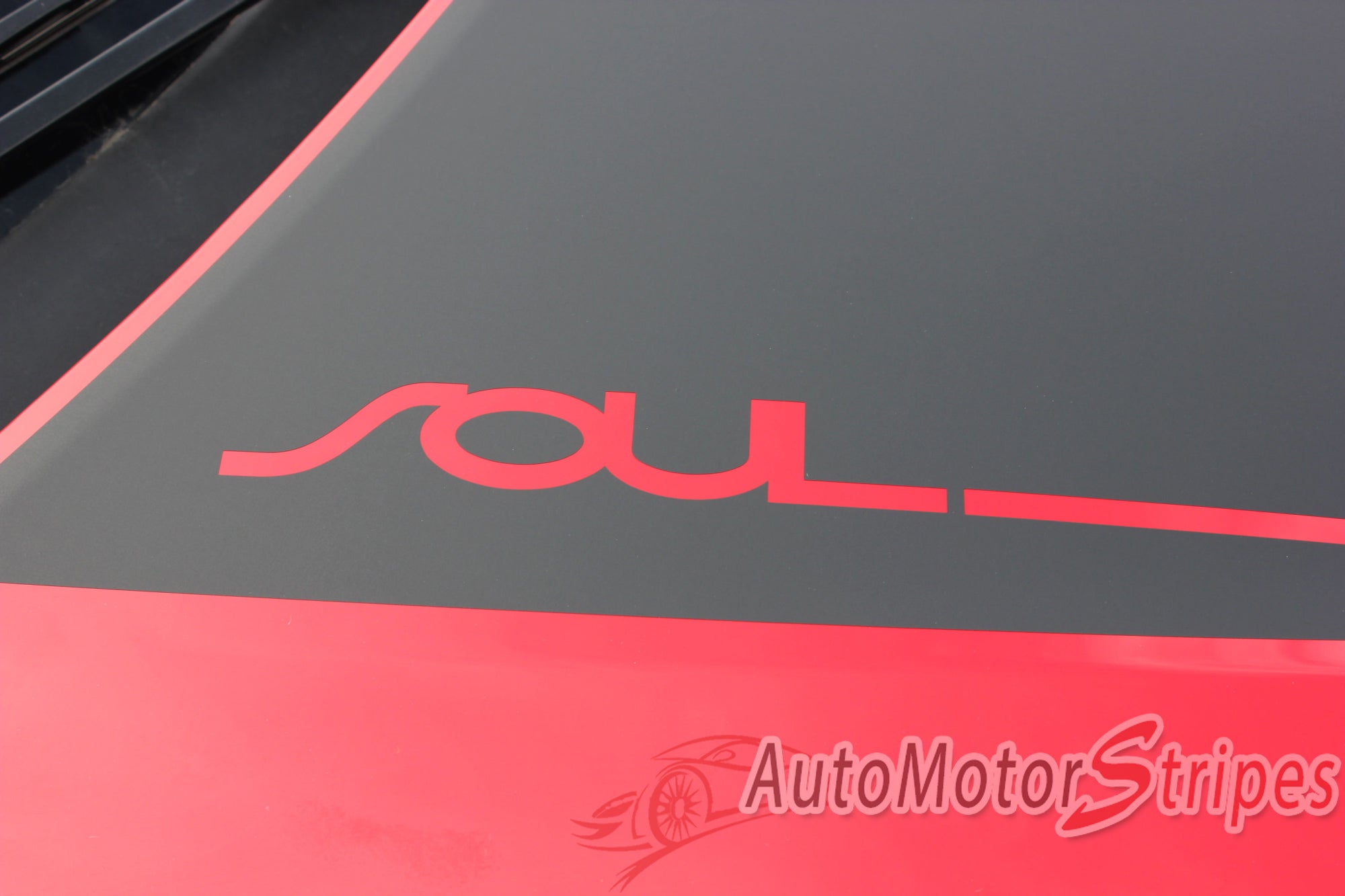 Detailed view of 2020-2025 Kia Soul Hood Decals Souled Hood Vinyl Graphic Stripes Kit