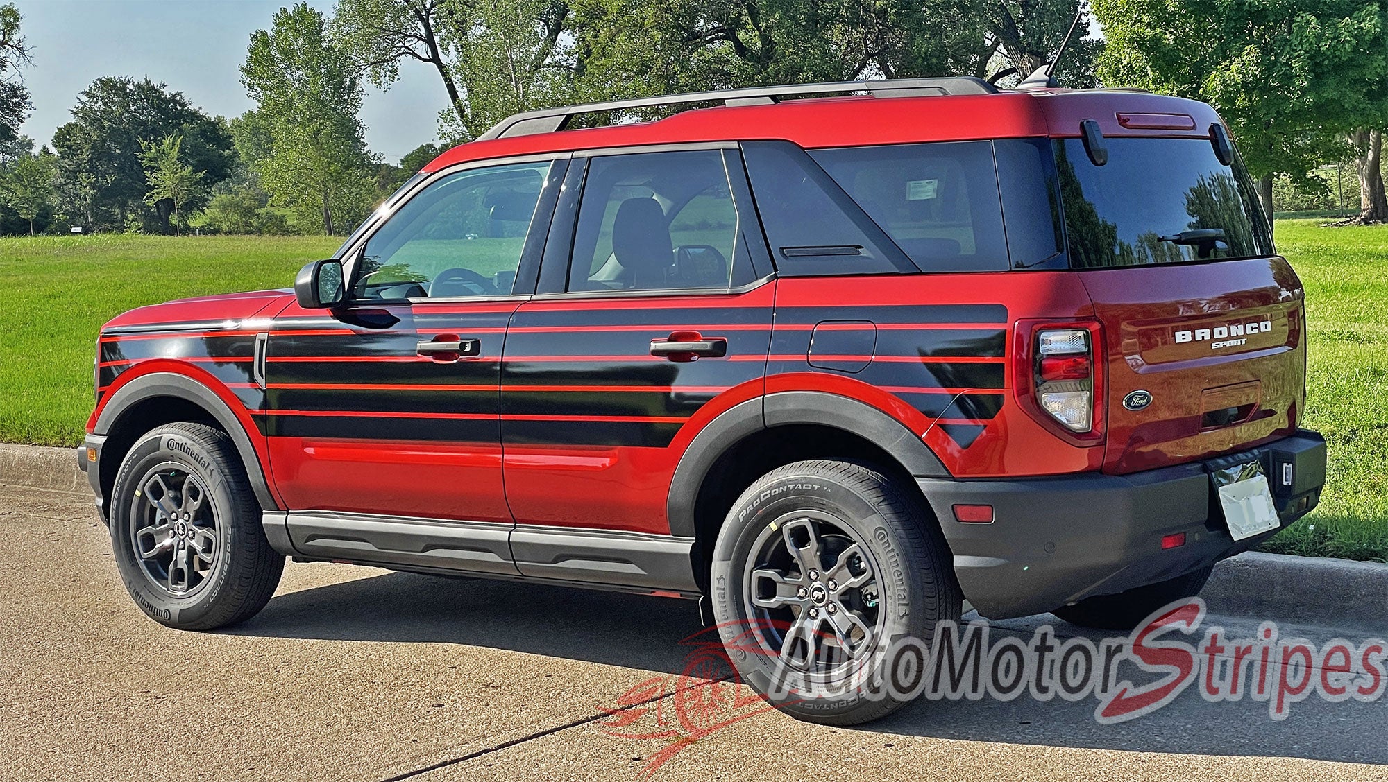 • Ford Bronco Sport SUNSETTER SOLID COLOR Side Body and Hood Stripes Upper Door Accent Decals Vinyl Graphics Kits 3M